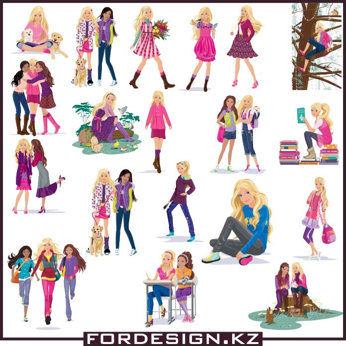 ![Мультяшные девочки Барби]()