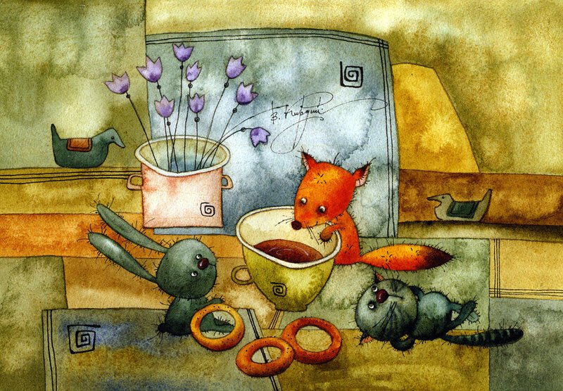 ![Добрые иллюстрации чаепитие]()