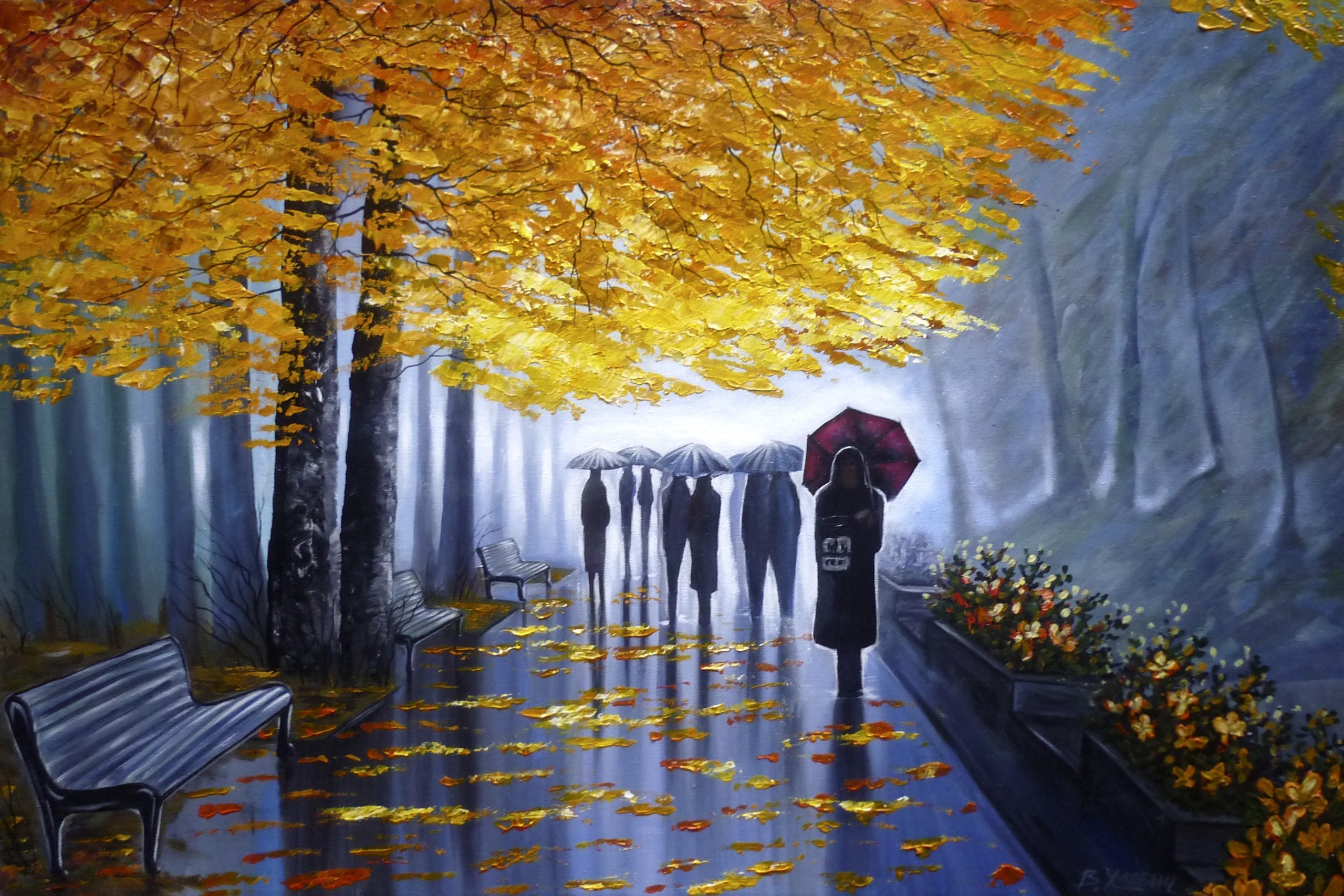 ![Дождливая осень живопись]()