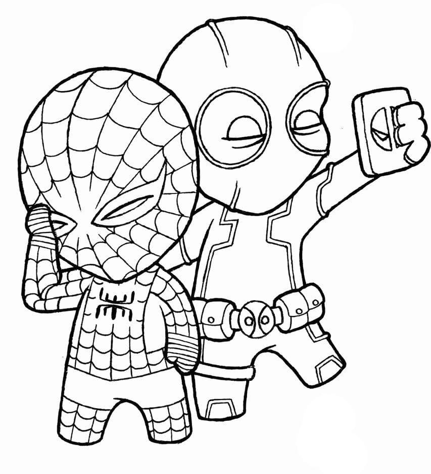 Раскраски Марвел человек паук и Дэдпул