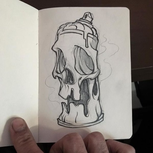 ![Рисунки в скетчбук карандашом в стиле граффити]()