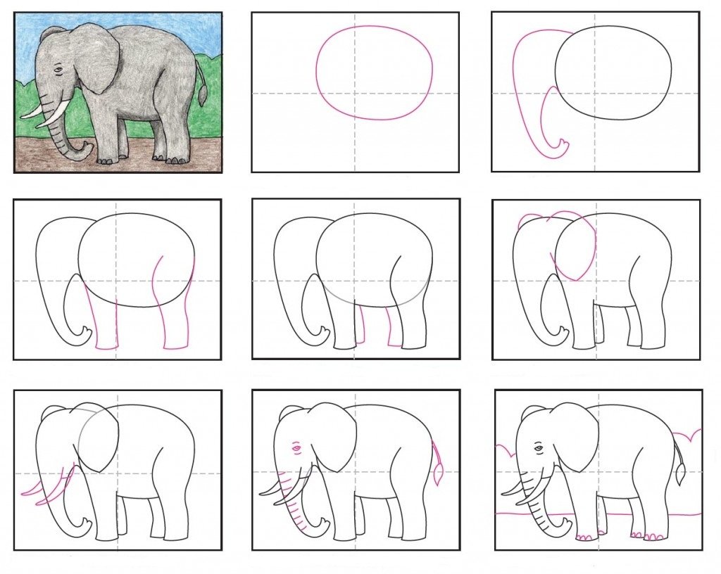 Поэтапное рисование слона