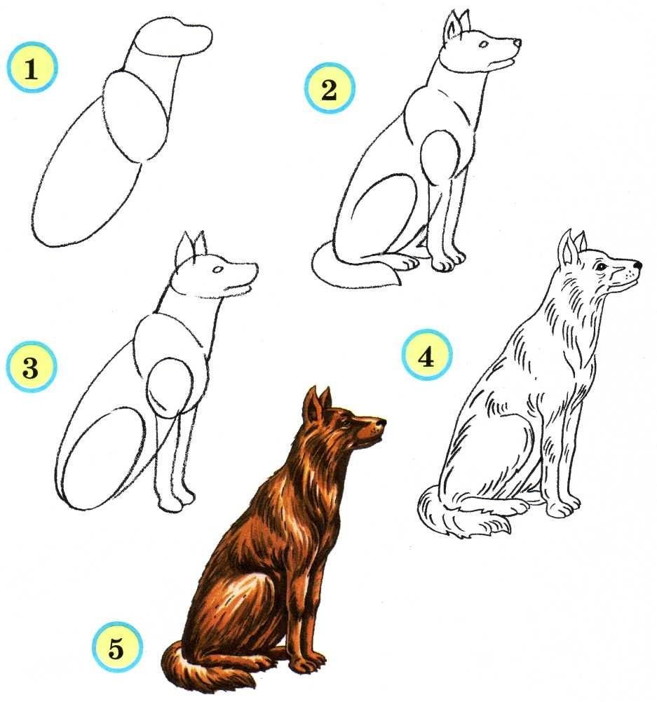 ![Пошаговое рисование собаки]()