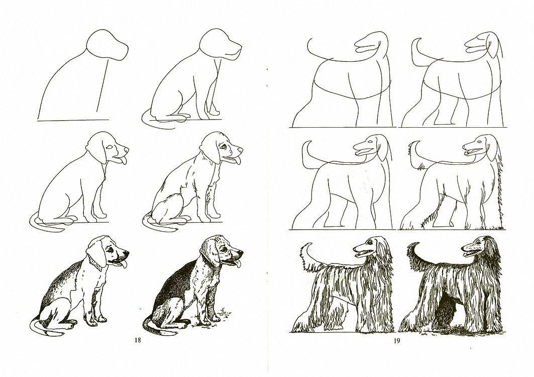 Пошаговое рисование собаки