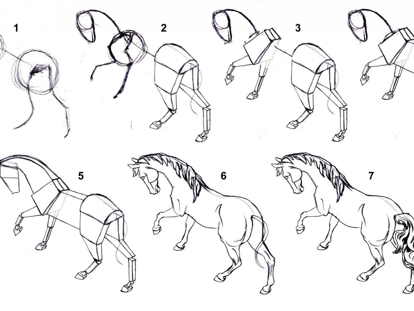 Пошаговое рисование лошади