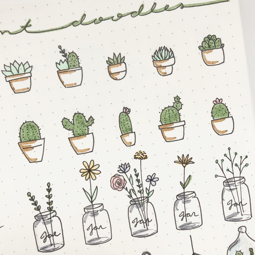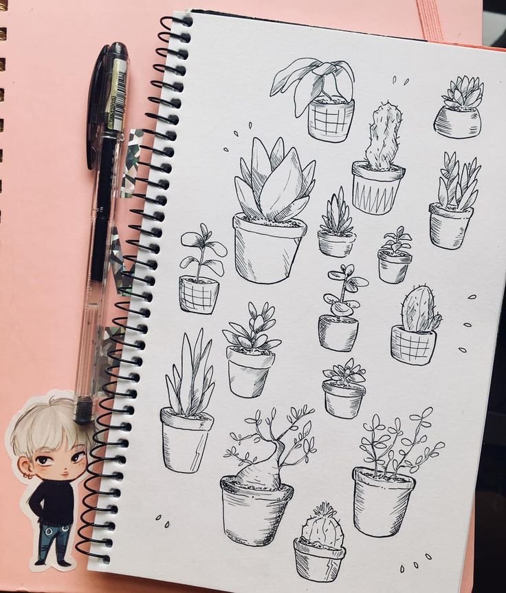 ![Растения в горшках для скетчбука]()