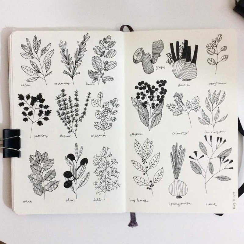 ![Растения в скетчбуке]()