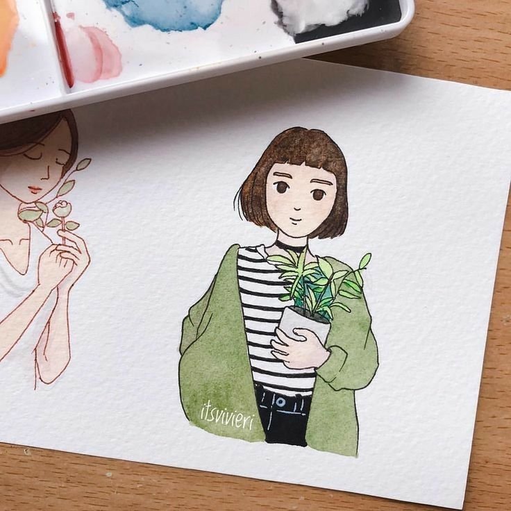 ![Простые Акварельные скетчи]()
