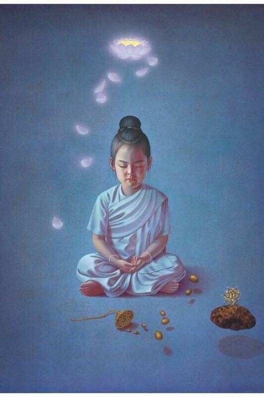 ![Девочка буддистка картина]()