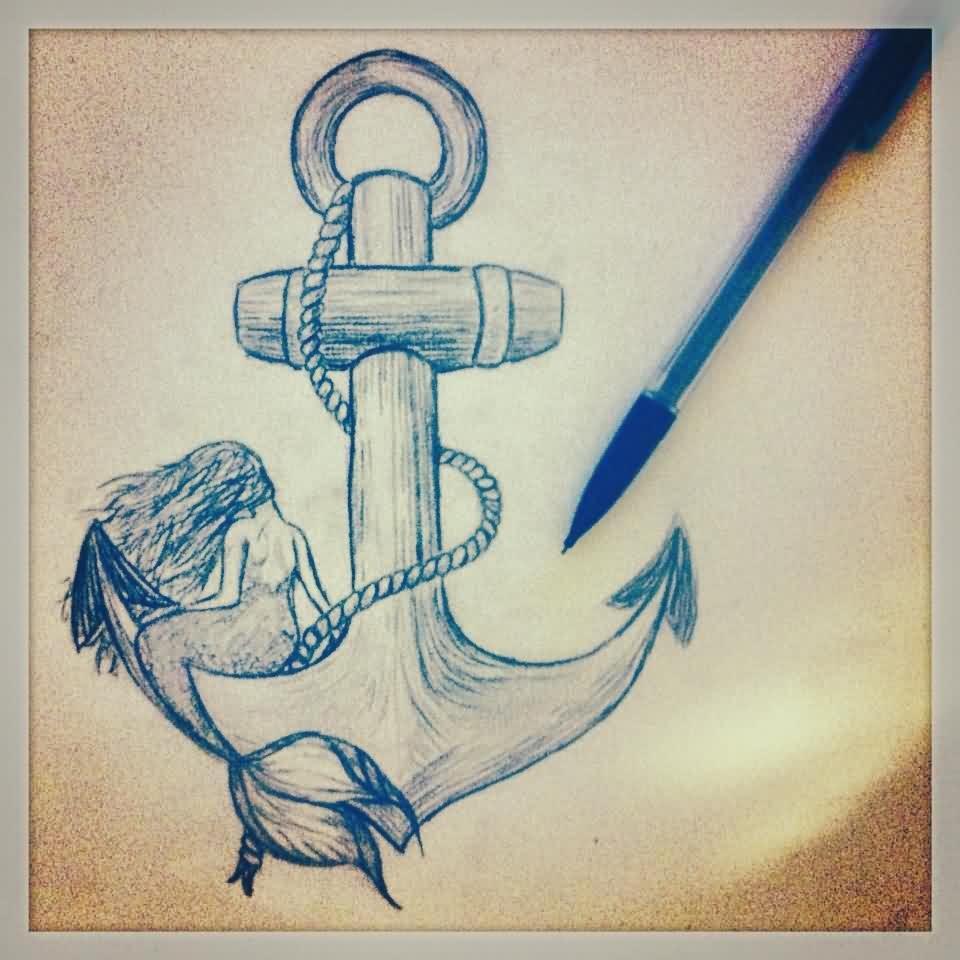 ![Якорь тату эскиз]()