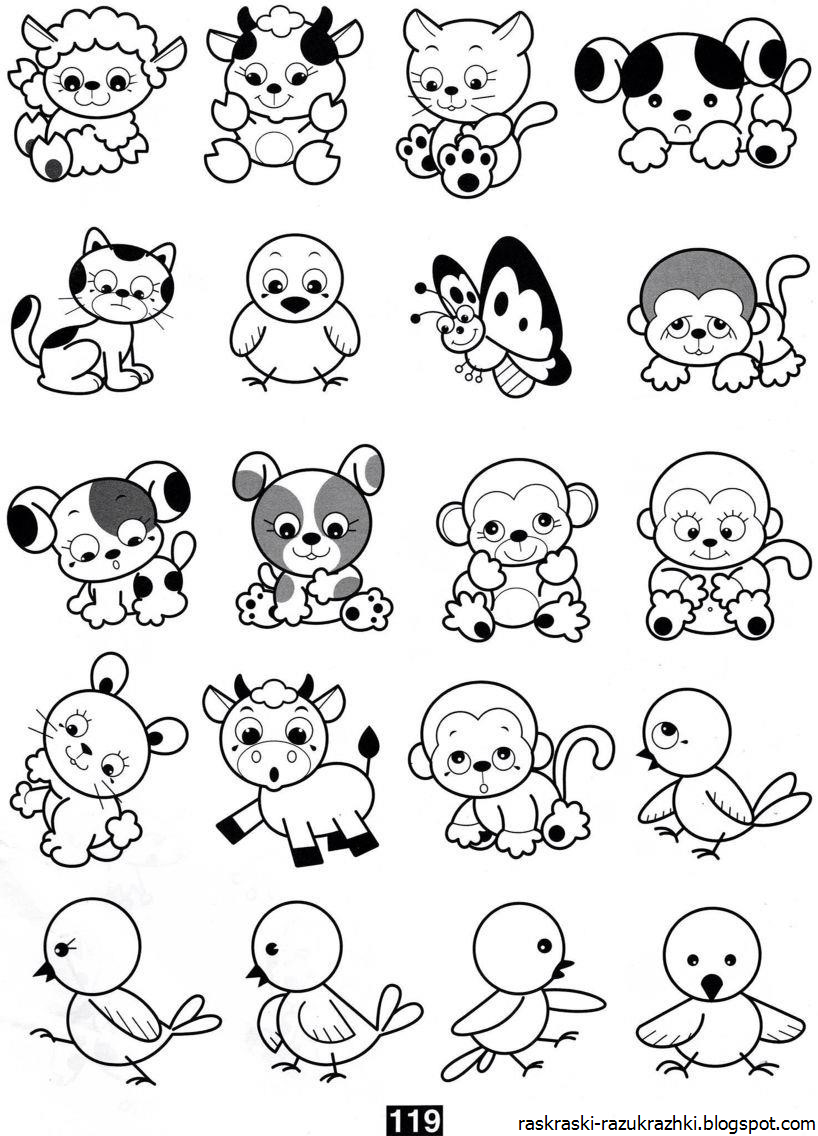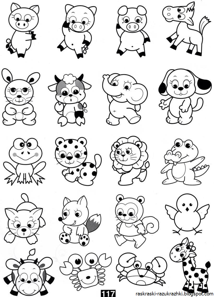 Милые зверята. Раскраска