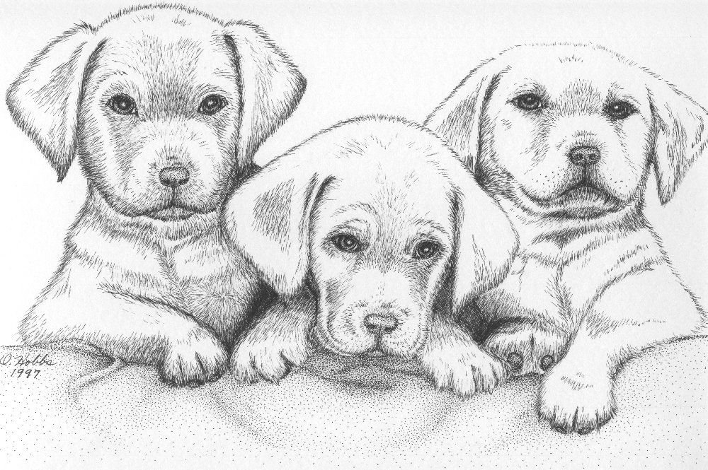 Щенки для срисовки карандашом