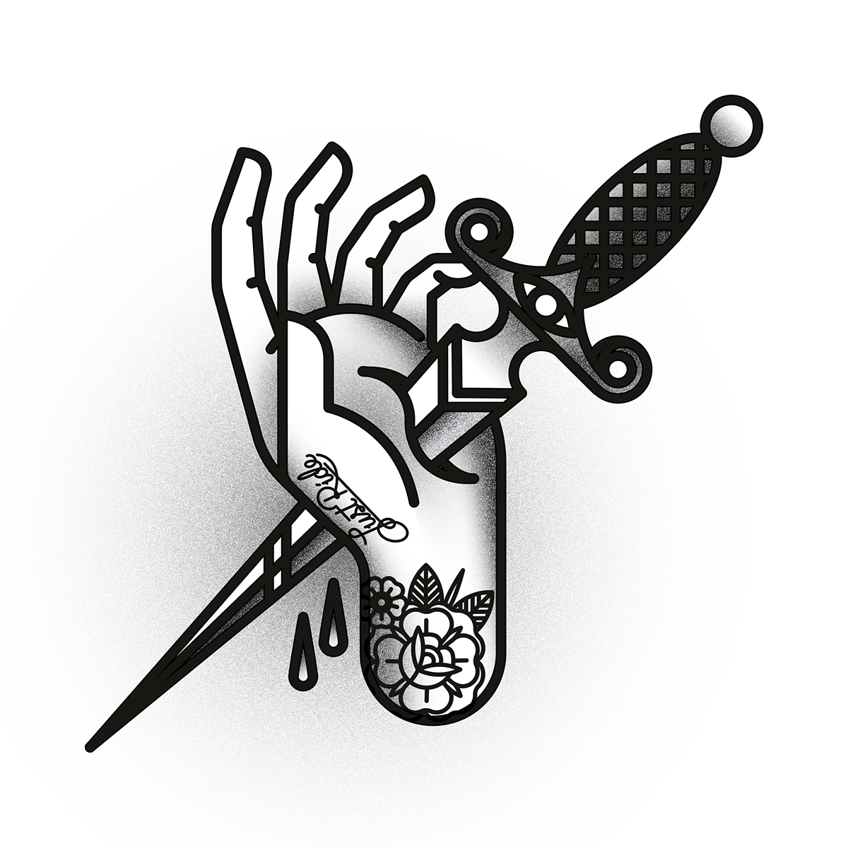 Кинжал тату эскиз с кровью