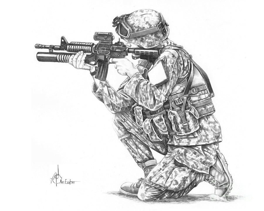 ![Солдат карандашом для срисовки]()