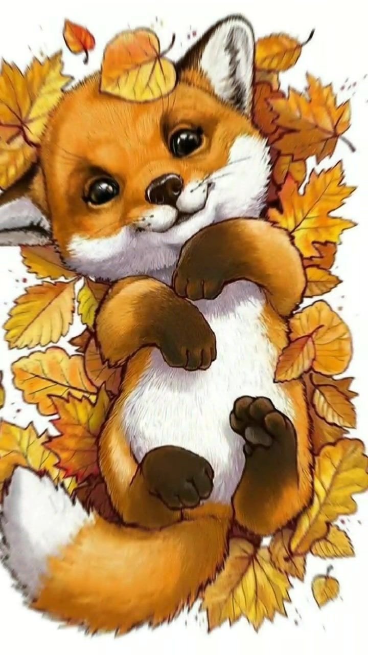 ![Лисенок в листьях]()
