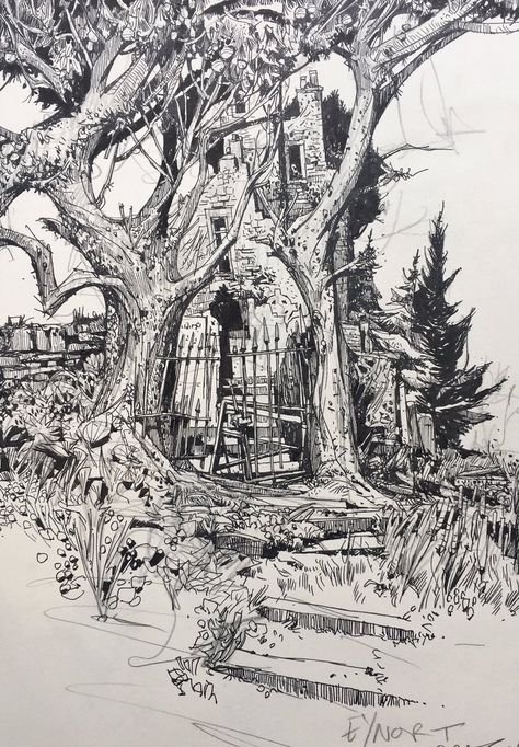 ![Ландшафтный скетчинг тушь]()
