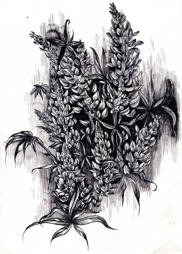 ![Цветы тушью и пером]()