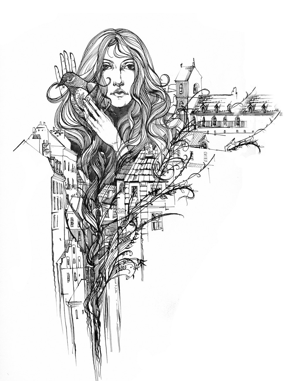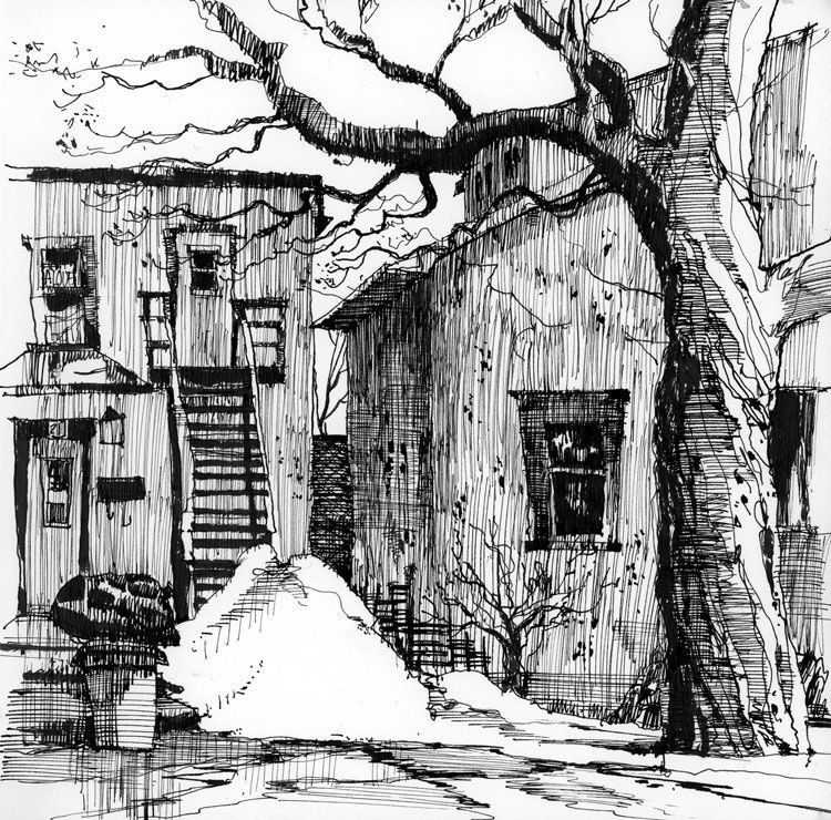 ![Графика тушью город]()