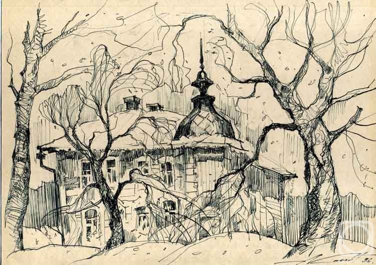 ![Пейзаж тушью и пером]()