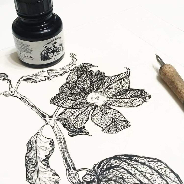 Цветы тушью и пером
