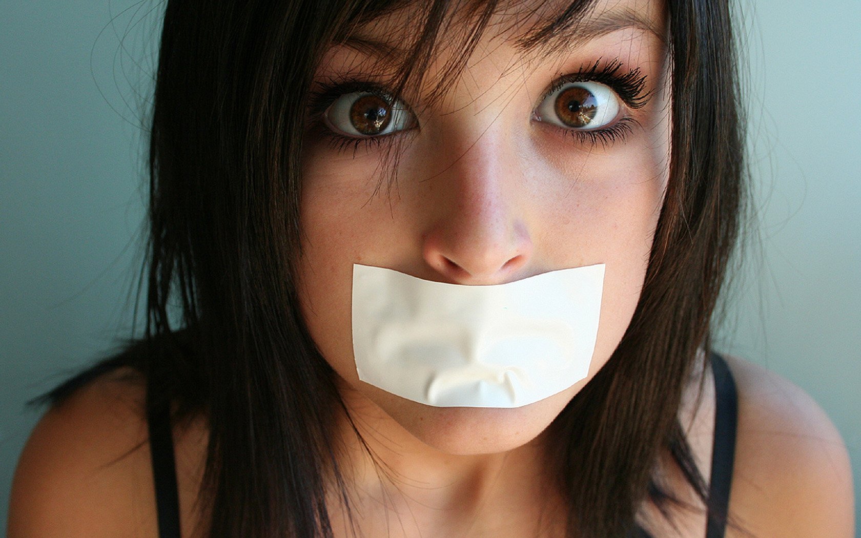 ![Девушка с заклеенным ртом]()