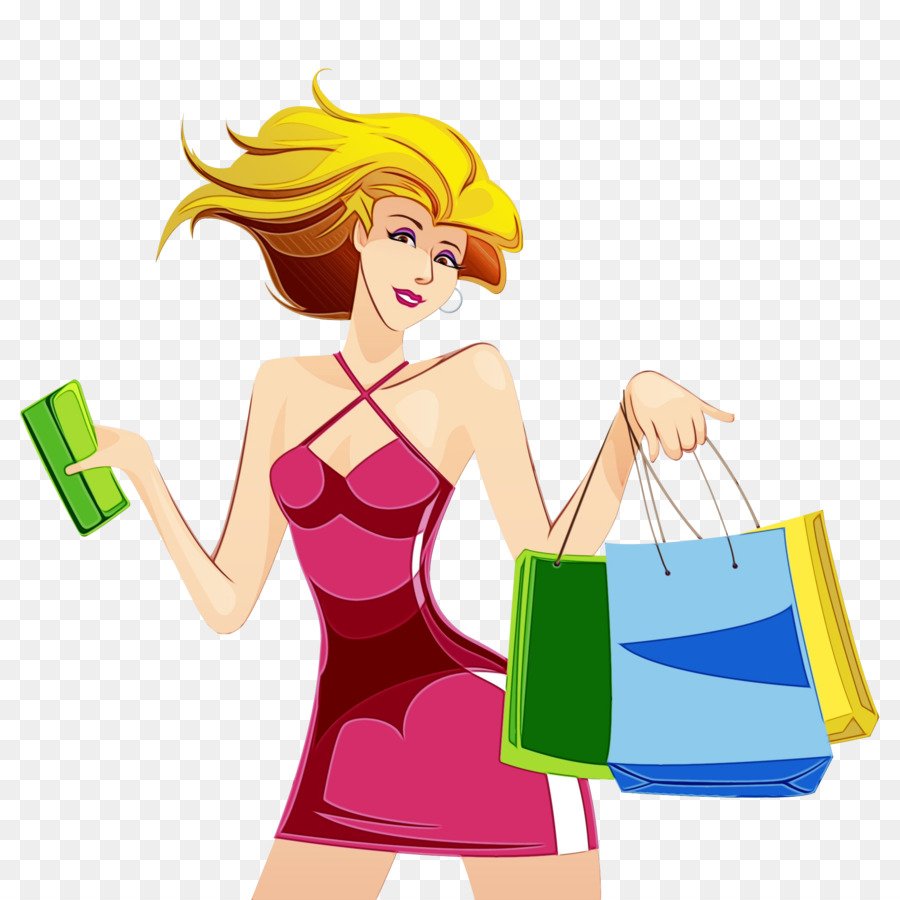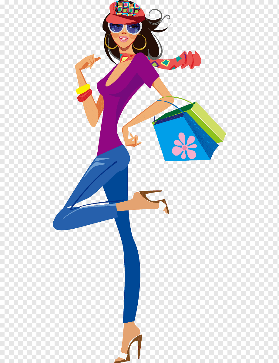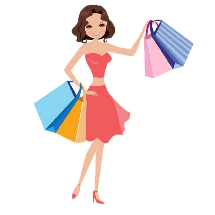 ![Рисованная девушка с покупками]()