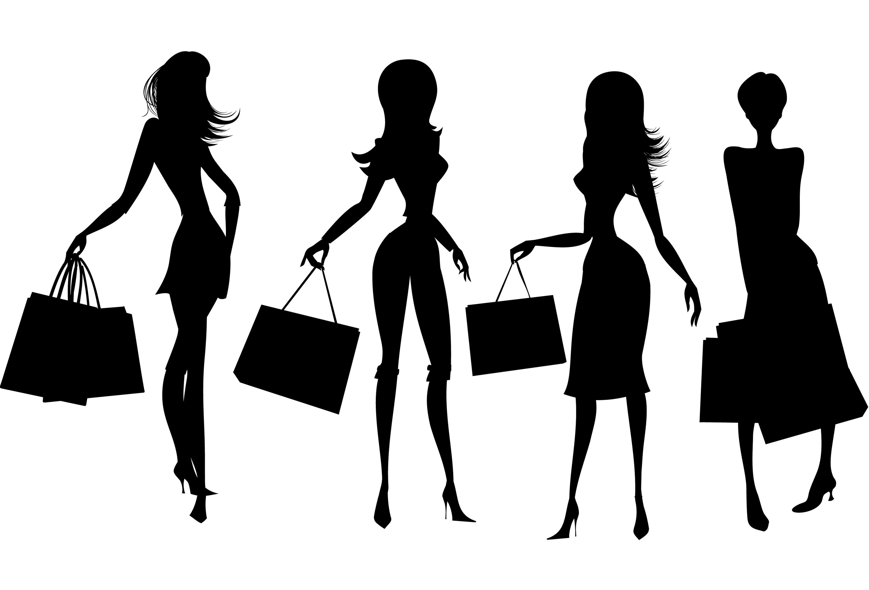![Шопинг силуэт девушка с пакетами]()