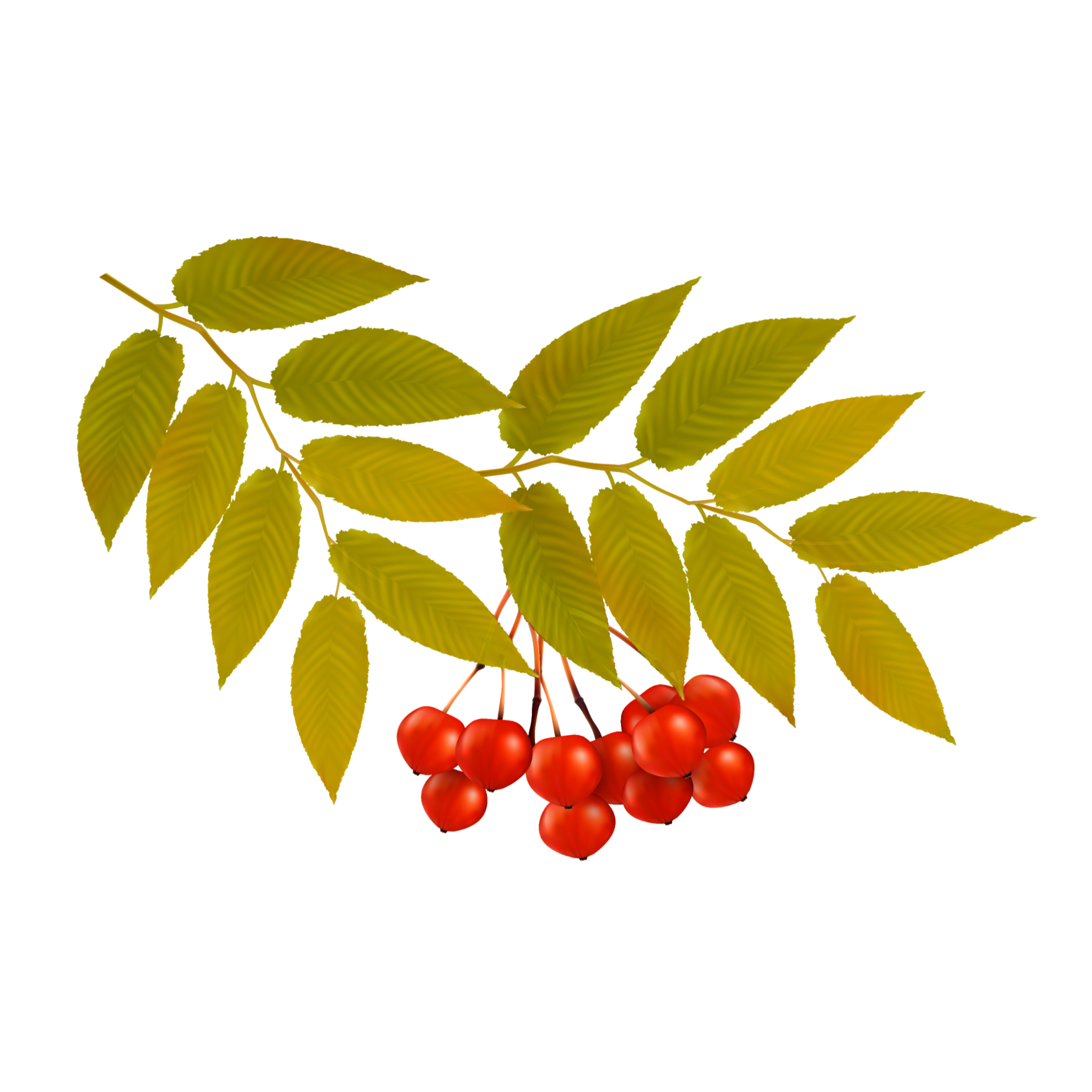 Рябиновая ветка на прозрачном фоне