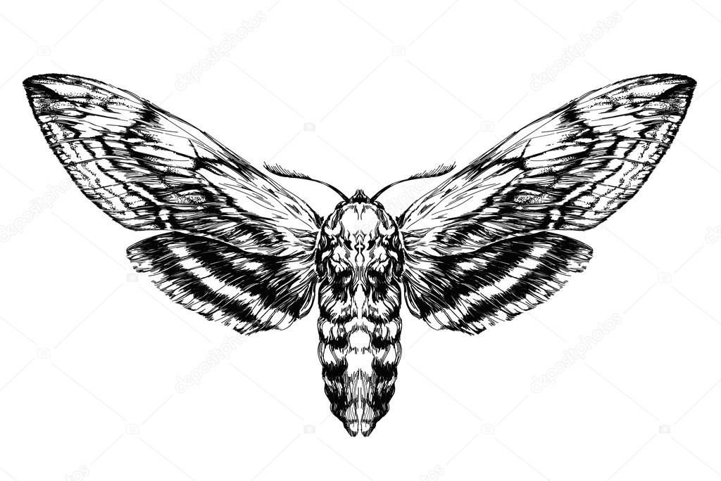 ![Бабочка Бражник мертвая голова рисунок]()