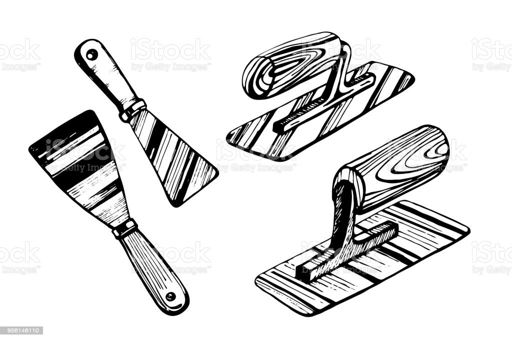 ![Строительные инструменты шпатель вектор]()