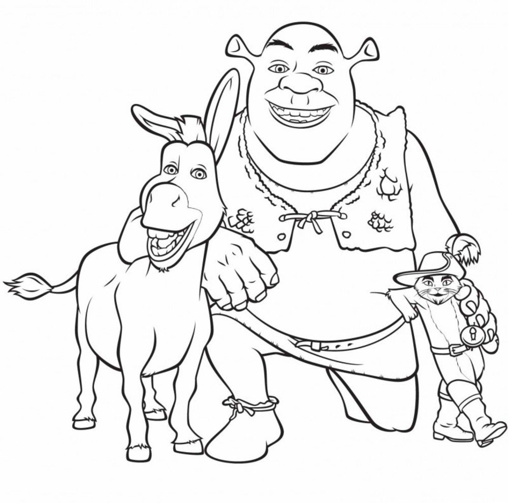 Шрек и осел раскраска