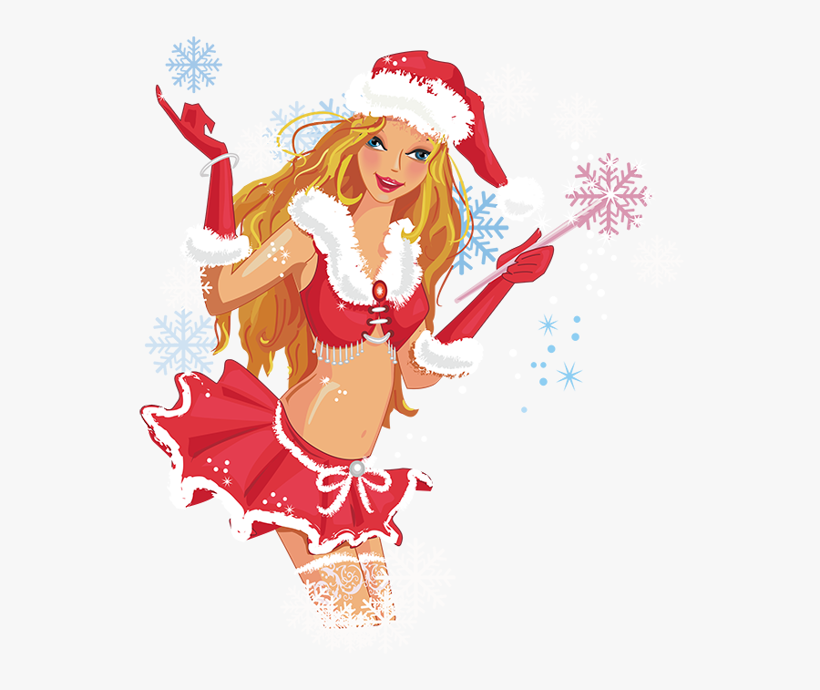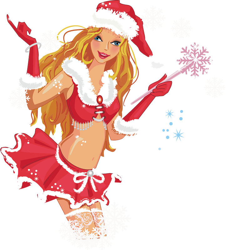 ![Девушки в новогодних костюмах на прозрачном фоне]()