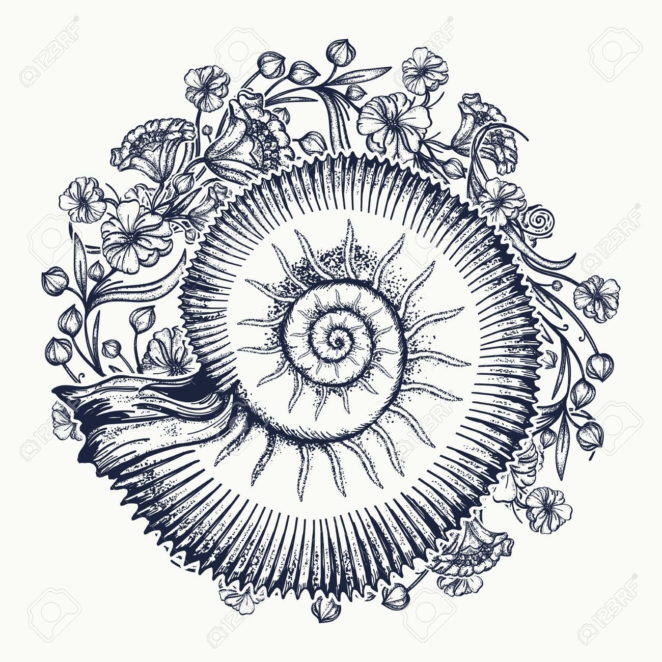 ![Наутилус моллюск тату]()