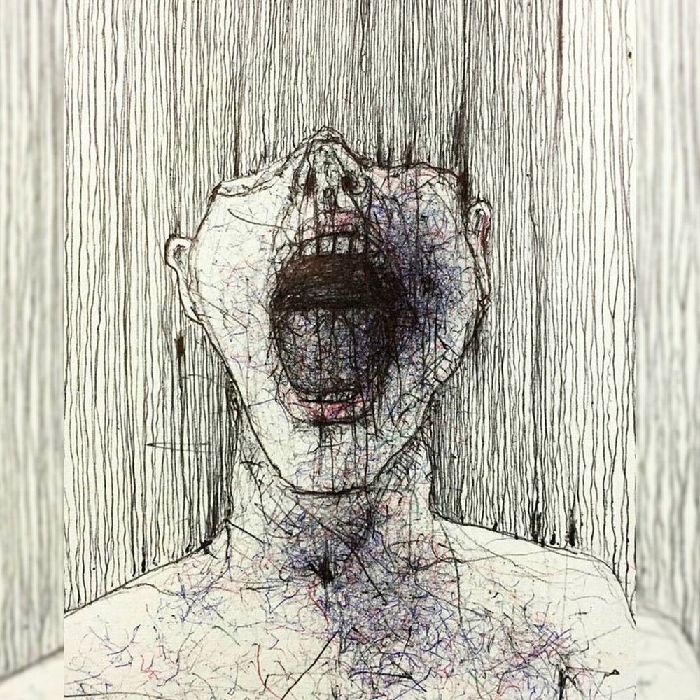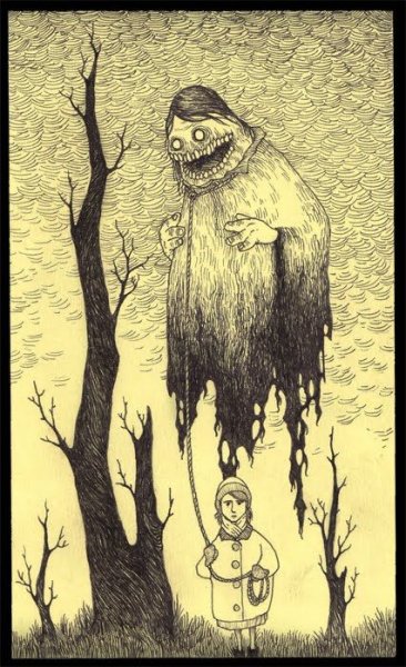 ![Жуткий черно белый арт]()