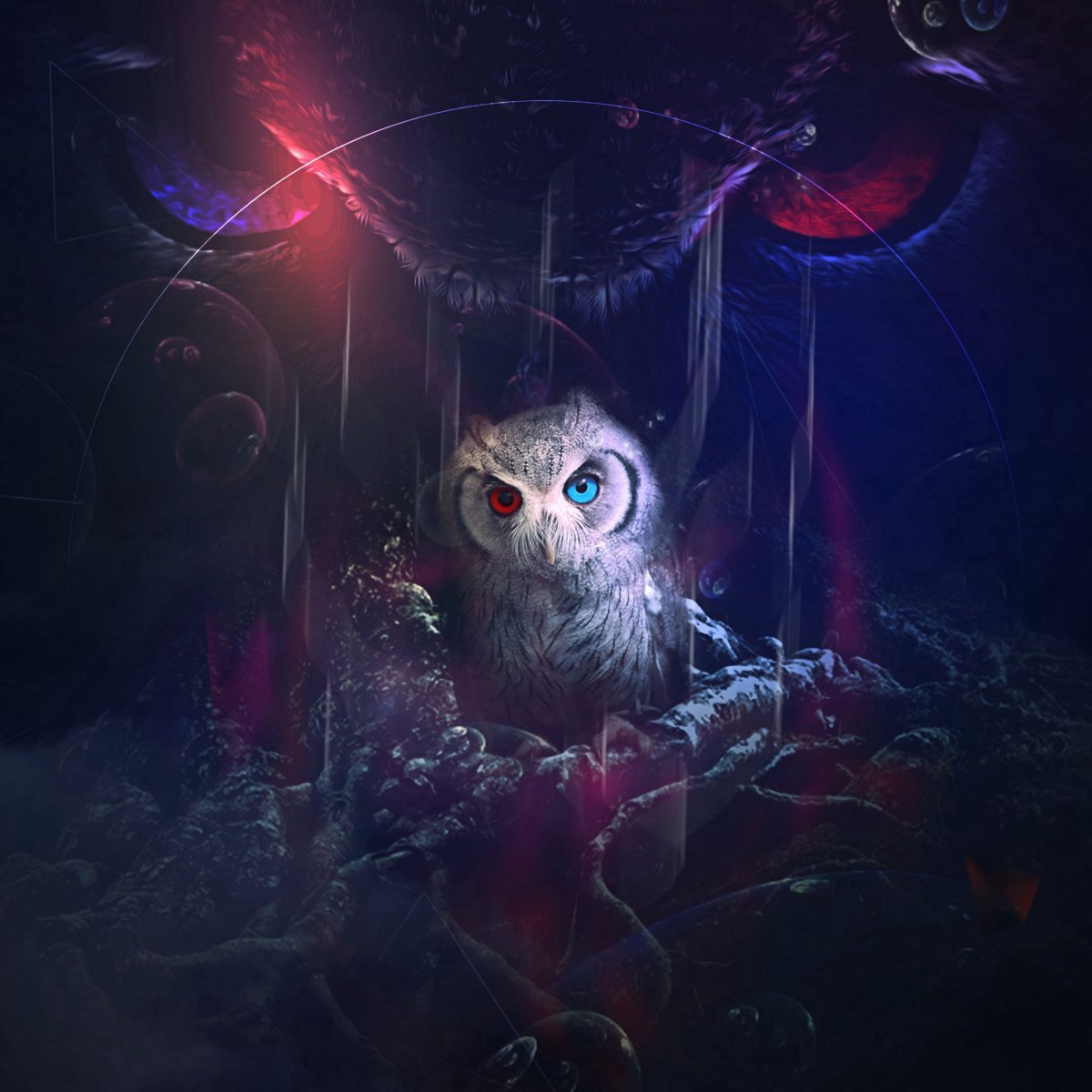 Сова со светящимися глазами