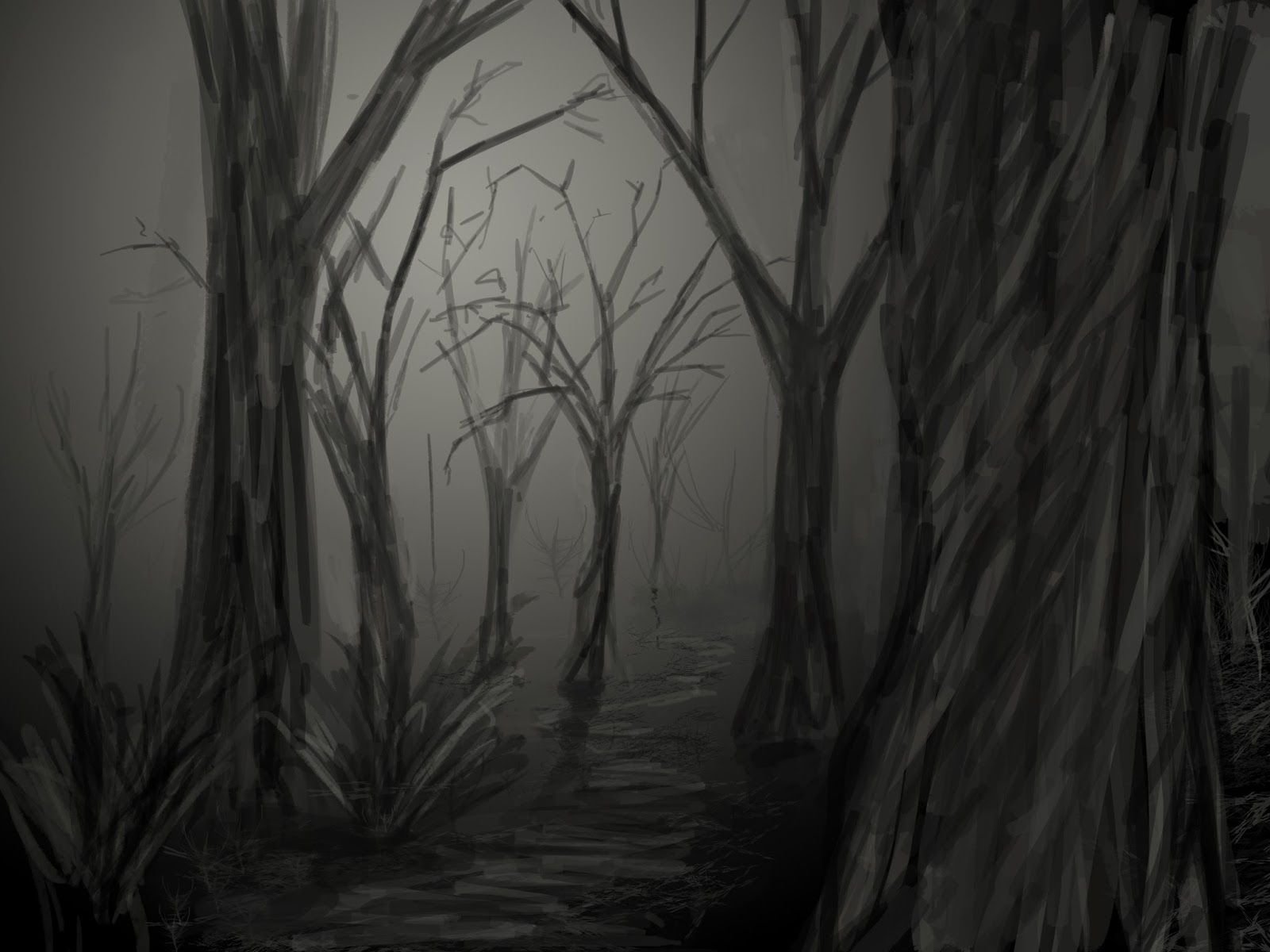 Нарисовать страшный лес