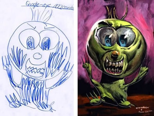 ![Детские рисунки перерисованные взрослыми]()