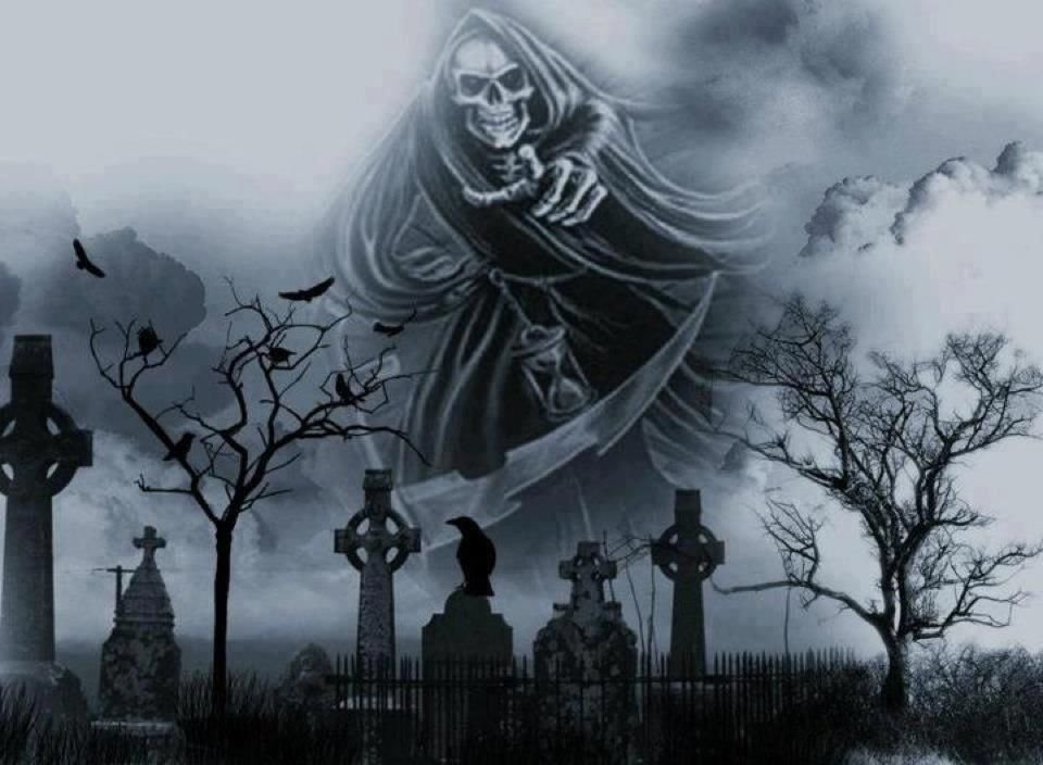 ![Смерть с косой на кладбище]()