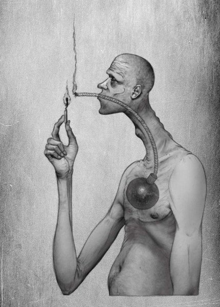 ![Жуткий черно белый арт]()
