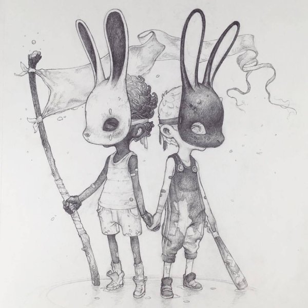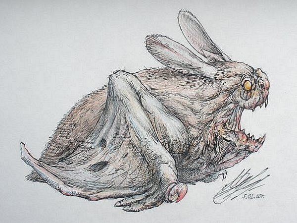 Страшный зайка - это рисунок, который вызывает много эмоций и оставляет незабываемое впечатление. На первый взгляд можно подумать, что зайка просто милый и безобидный персонаж, но при более пристальном рассмотрении становится очевидно, что он имеет необычные черты и выражение лица, которые наводят на мысль о его пугающей сущности. Каждая линия и деталь этого рисунка создают атмосферу мистики и загадочности, заставляя зрителя задуматься о том, что может скрываться за таким необычным и страшным зайкой. Этот рисунок точно привлечет внимание любителей необычного и уникального и добавит особой ноты интриги к вашей коллекции искусства.