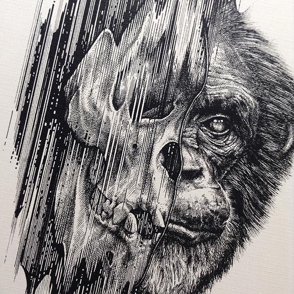 ![Страшные рисунки животных для срисовки]()