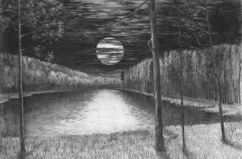 Ночной пейзаж карандашом