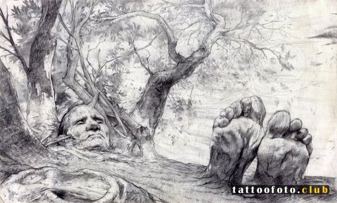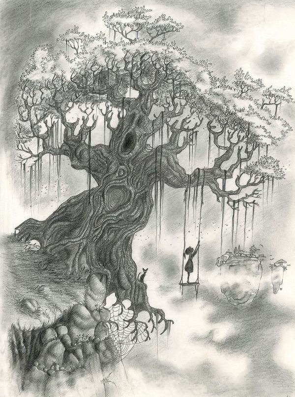 ![Фантастическое дерево карандашом]()