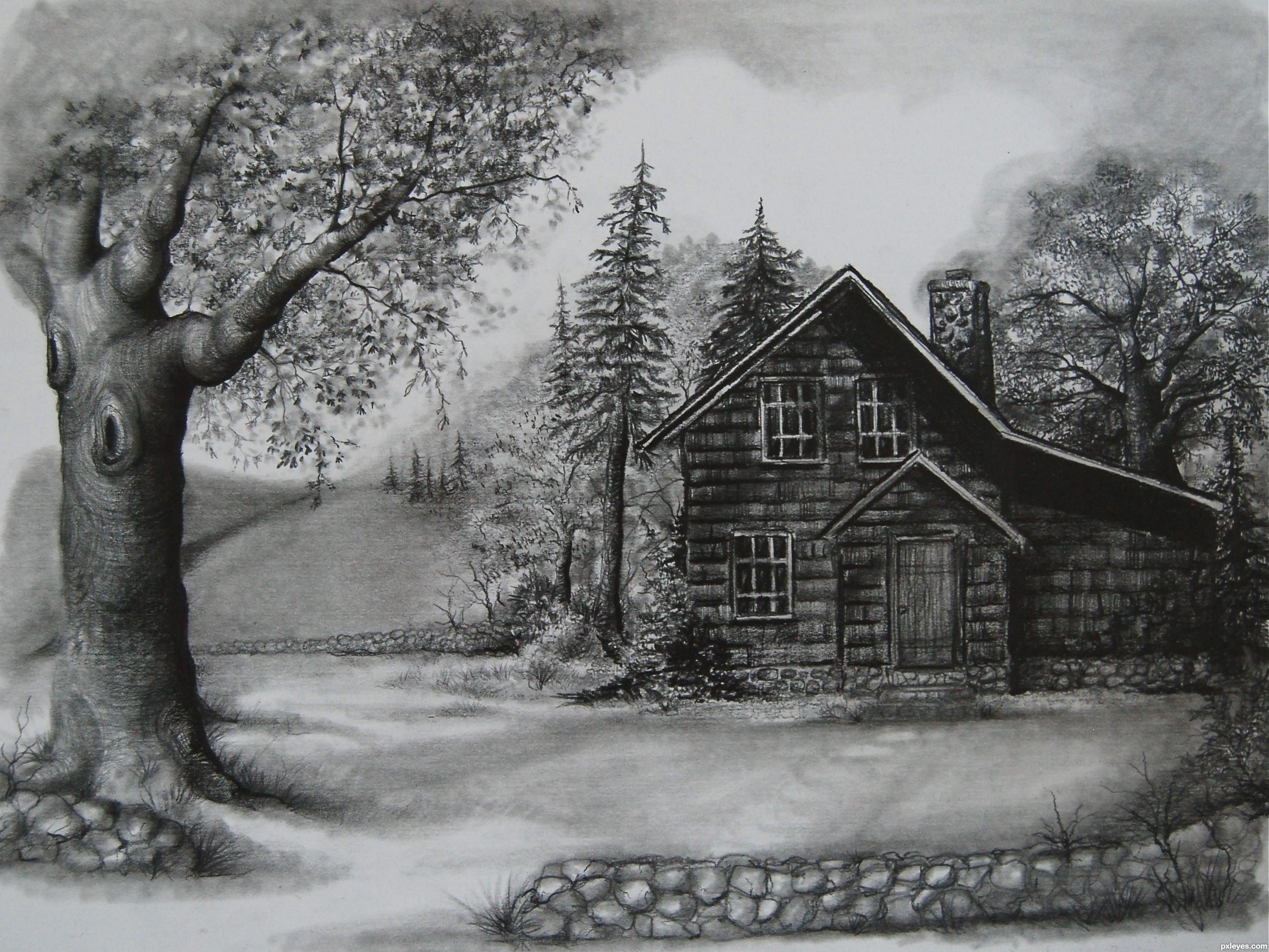 ![Мрачный пейзаж карандашом]()