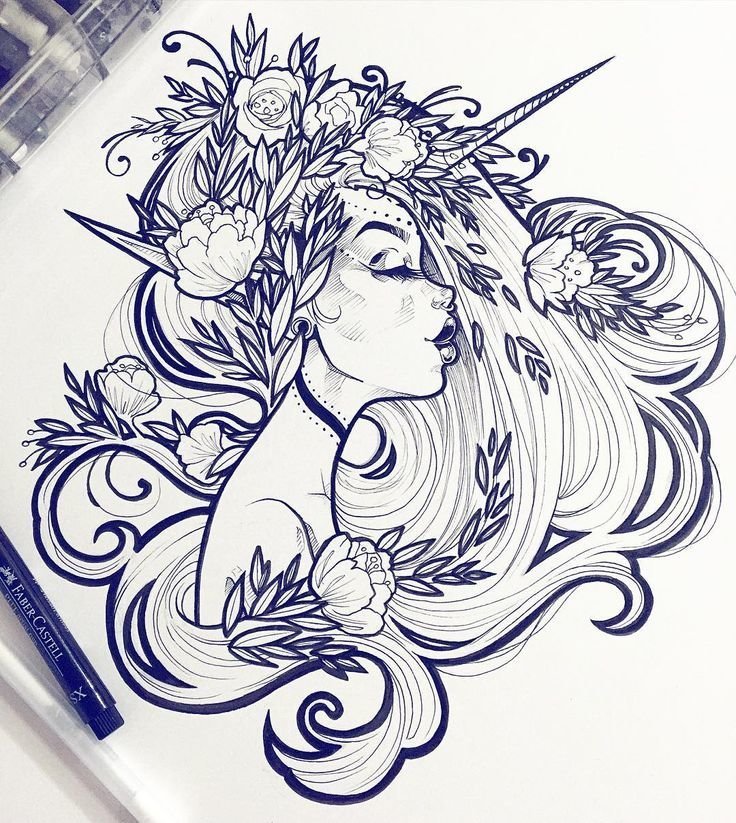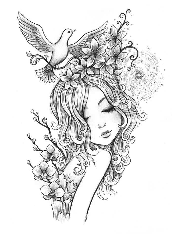 ![Красивая девушка эскиз]()