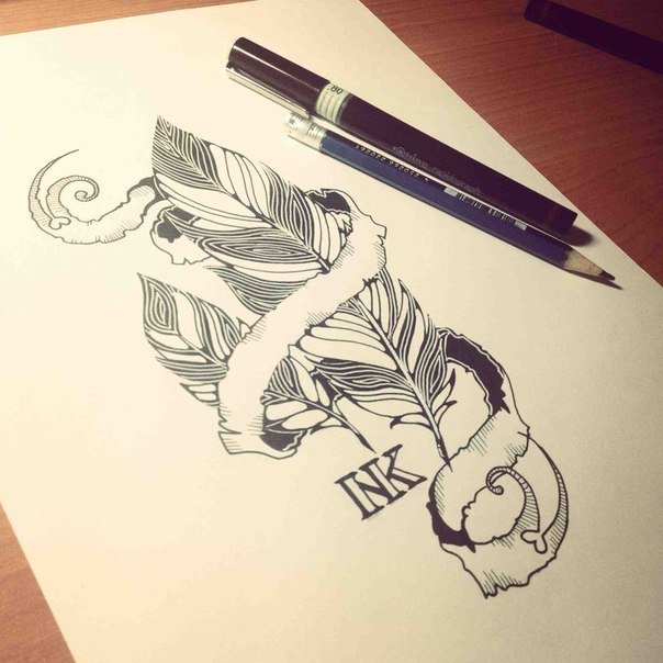 ![Тату карандашом на бумаге]()