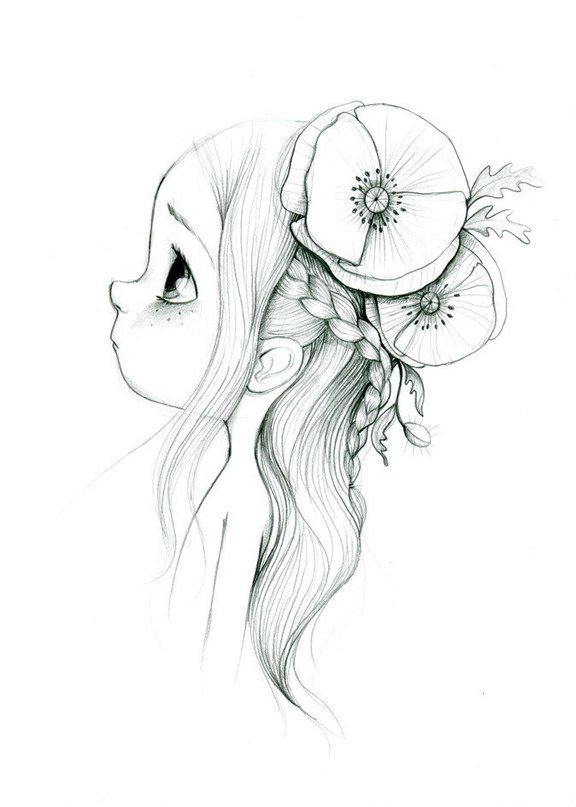 Рисунки простым карандашом для срисовки девочки