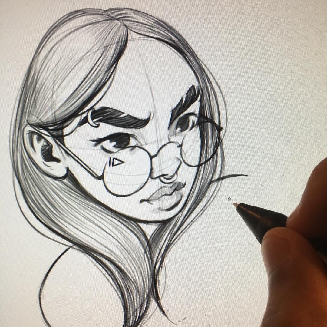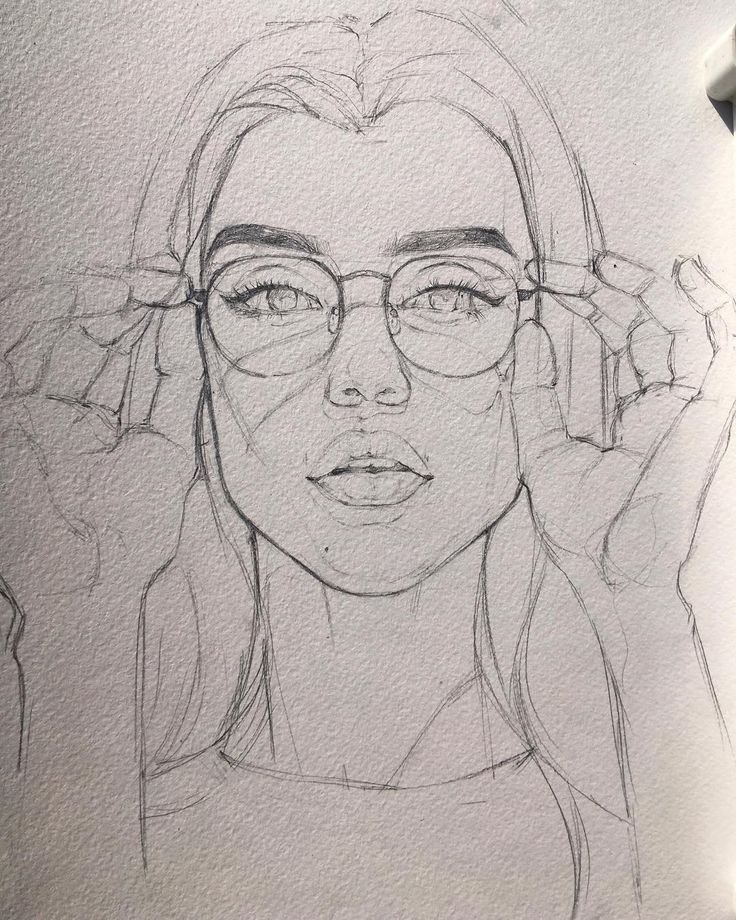 ![Карандашный портрет девушки в очках]()
