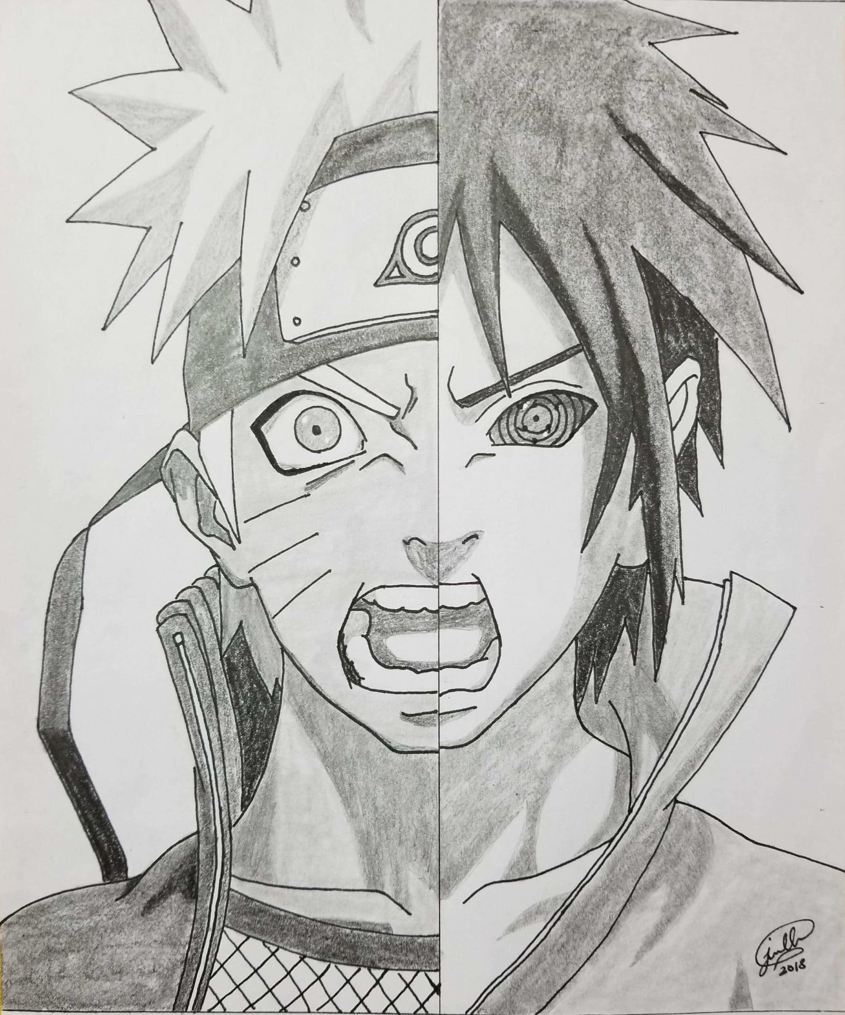 Наруто и Саске карандашом