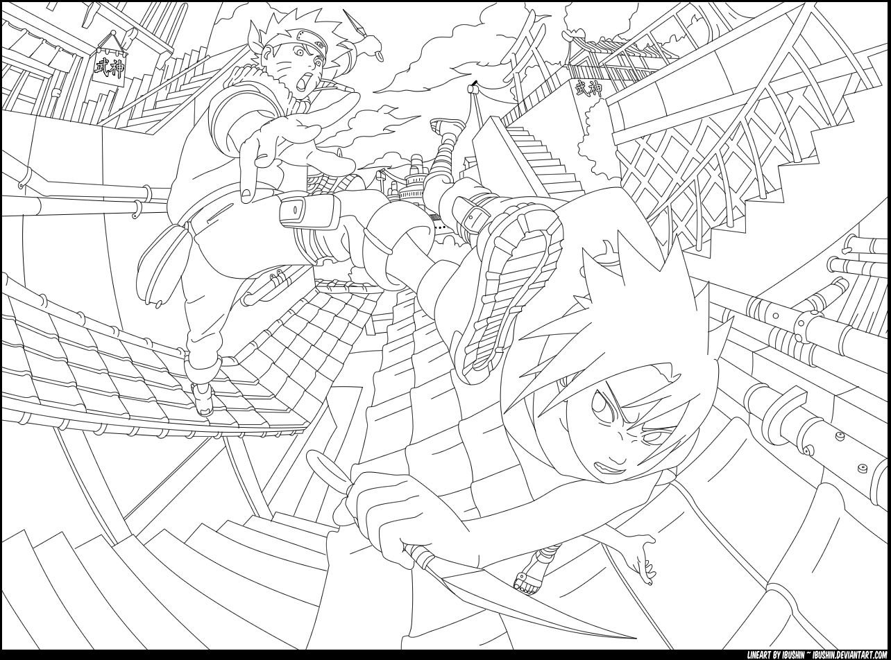 Наруто и Саске для срисовки